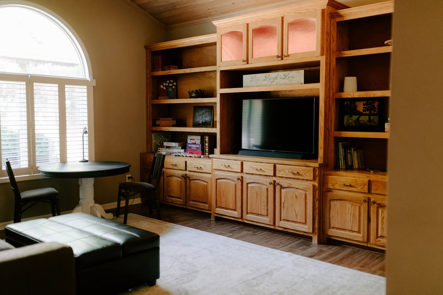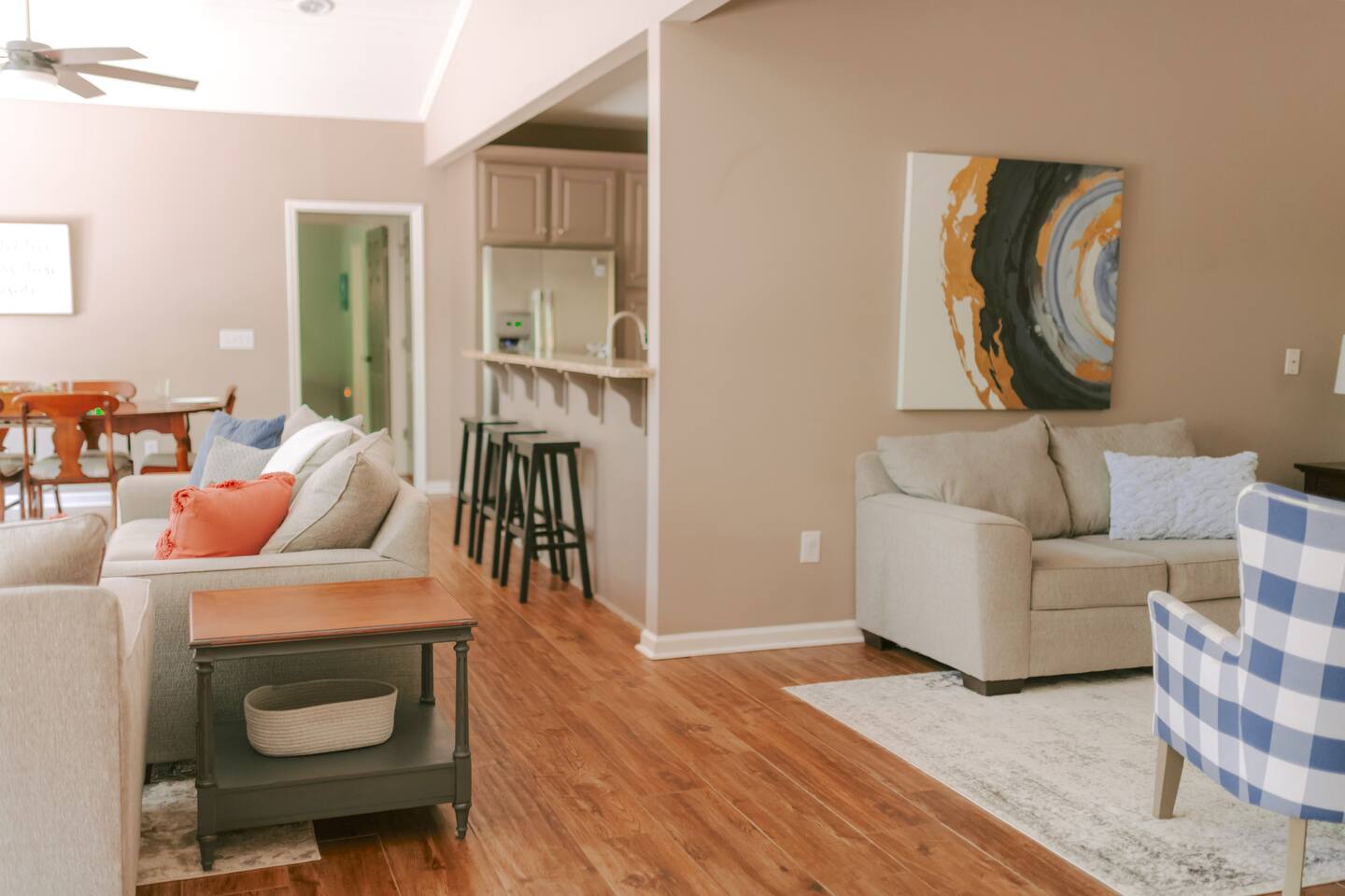 This lakefront home is in a small single cul-de-sac neighborhood. The properties are close enough that you don't feel isolated in the middle of nowhere, but with enough space to expect to not actually see any people outside of your own group. All the other homes are full time residences, so making sure we maintain good relationships with our neighbors is a high priority. We ask that noise be limited past 10 PM, and please no parking in the cul-de-sac or shared drive. Our neighbors are lovely, the neighborhood is beautiful, and we know you'll feel right at home here!